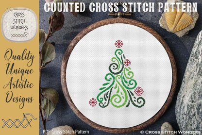 This beautiful ART DECO TREE was adaped for cross stitch from licensed artwork by designstitch.\nDesign is within 102 x 123 stitches in size and uses four colors of DMC floss.\n\nSize 11 count: 9.27 x 11.18 inches or 23.55 x 28.40 cm\nSize 14 count: 7.29 x 8.79 inches or 18.51 x 22.32 cm\nSize 16 count: 6.38 x 7.69 inches or 16.19 x 19.53 cm\nSize 18 count: 5.67 x 6.83 inches or 14.39 x 17.36 cm