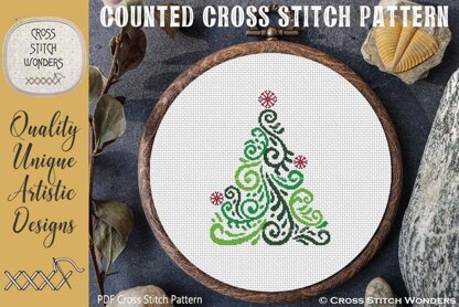This beautiful ART DECO TREE was adaped for cross stitch from licensed artwork by designstitch.\nDesign is within 99 x 128 stitches in size and uses four colors of DMC floss.\n\nSize 11 count: 9.00 x 11.64 inches or 22.86 x 29.56 cm\nSize 14 count: 7.07 x 9.14 inches or 17.96 x 23.22 cm\nSize 16 count: 6.19 x 8.00 inches or 15.72 x 20.32 cm\nSize 18 count: 5.50 x 7.11 inches or 13.97 x 18.06 cm