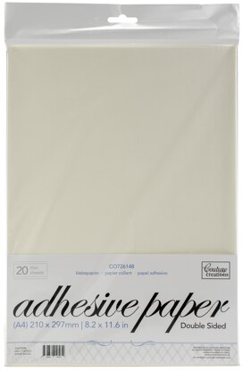 Create custom stickers with die-cut pieces, embellishments, stamped images and more with the Double-Sided Adhesive Jac Paper from Couture Creations! This double-sided adhesive sheet can also be used with glitter and foils for creating amazing effects!\n\nPackage Includes:\n20 double-sided adhesive sheets measuring 8.2” x 11.6” each