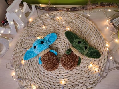 I propose to crochet master Yoda from the beloved Star Wars movie. Toy size 11 cm (4.33 inches). Suitable for a keychain on a backpack, for a keychain in a car, for a keychain on keys, and just as a small toy. Necessary yarn 1) Yarnart Yarnart Dolce or Himalai Dolphin baby or any other plush yarn that is 100g / 120m green or turquoise, brown, and beige 2) hook 4mm 3) a needle with a large eye and a blunt end for sewing 4) filler 5) eyes 12mm