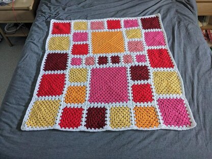 Approximately 13.6 times bigger than your 3-round square. Sample measures 40” square.