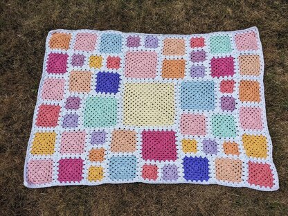 The idea behind the All Squared Away patterns is to take the traditional granny square pattern and make it sing! These patterns are designed to use squares of different sizes, which makes them ideal for using up scraps; while the joining method used cuts down on the number of ends you need to weave in.
