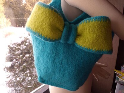 Here’s a boldly feminine felted tote with an eye-catching shape, a roomy interior pocket, and a cute coordinating wallet. This bag would be equally at home spending a day at the races or a day at the beach.