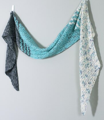 This striped scarf is worked from one end to the other using three colors of fingering weight yarn. Stripes are used to transition from one color to the next. Easily adjust the width to create a shawl or narrower scarf.