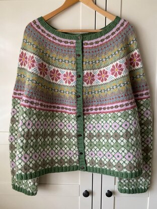 All Fairisle sections are charted separately. 2 options for Chart D – flower or snowflake. If the body is worked in stocking stitch, the cardigan has a looser fit. If the body is worked in the diamond pattern, it has a closer, more structured fit.
