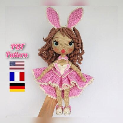 Astrid crochet doll pattern in bunny outfit, Amigurumi doll pattern (English, Français, Deutsch)