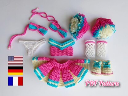 Astrid doll clothes crochet pattern, Amigurumi doll Cheerleader outfit pattern (English, Deutsch, Français)
