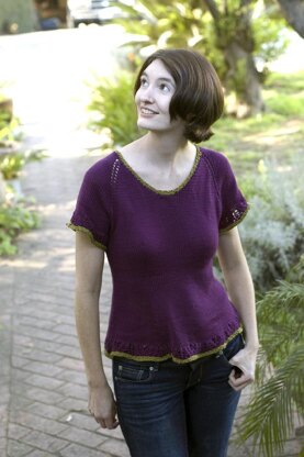 Atalanta is a top down raglan shirt knit in a soft cotton blend, perfect for spring. Atalanta was a princess in Greek mythology, strong and capable and fast of foot. This comfortable and practical garment, loose fitting, but with flattering dart shaping, strikes me as a sort of modern take on something a Greek huntress might wear. The simple lace edging adds a point of interest for the knitter, and creates something a little different than the usual tee shirt.