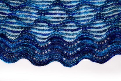 This pattern uses drop stitch lace to create a wavy light fabric, perfect to wear as a shoulder warmer on a chilly summer evening on the beach. The Dyers at Nooch Fiber were kind enough to create a special colorway for this pattern called O Trem Azul. It is a perfect deep blue with aqua and indigo highlights to mimic the look of the ocean water.