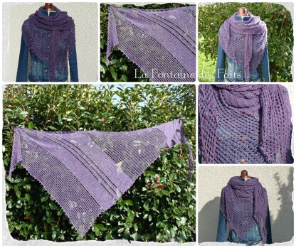 Le châle Aubeline est un châle simple, léger et très enveloppant. Il est de forme triangulaire légèrement asymétrique.