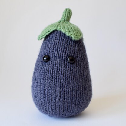 Introducing my Aubergine knitting pattern. Aubergines are also known as Eggplants in US English. Knitted veggies are super toys to encourage little ones to eat veg and greens, or you can use them as decorative items in your home. My veggies are worked flat, but most pieces could easily be converted to knitting in the round if that is your preference. You will also need to cast on and off, knit, purl, work increases and decreases, and sew seams.