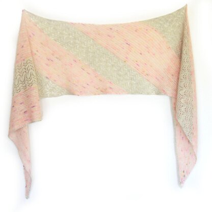 Immerse yourself in this delicate confection, as sweet and light as fairy floss. Audra is a large bias wrap with simple shaping that begins with an eyelet border then alternates airy garter stripes with exquisite lace, like layers of sorbet and cake. Choose three colours in frosty neutrals or candy-coloured brights, work the layers as long as you like, and make it a luscious, one-of-a-kind piece. Designed to take you from early morning to cool, shimmery evenings, Audra is such an indulgent and satisfying knit, you’ll never take it off.