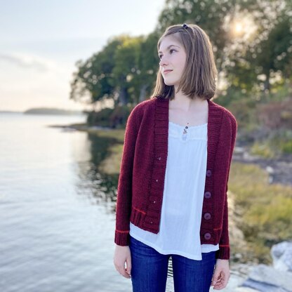 This cardigan features top-down, seamless raglan construction and instructions include options for 3 different body shaping options - no shaping, waist-shaping or A-line shaping. A simple stripe of contrasting color is featured above the hem and cuffs for a little visual interest (although you can add more stripes or omit if you prefer). This is a versatile piece that you can tailor to your own personal style!