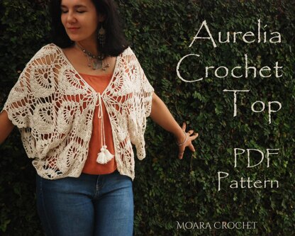 Aurelia Crochet Cardigan can be used both ways to create either a crochet cardigan or a crochet top. Elegant bohemain top has a traditional kimono style design which drapes beautifully around the wearer. A twist on the usual crochet pineapple motif this deign is full of delicate details & textures.