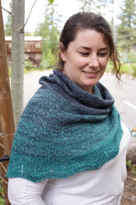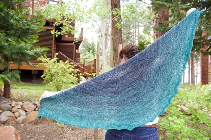I’ve always loved the idea of using multiple strands of yarn to create a gradient effect. Lace weight is perfect for this because you can use 3 strands together, without creating a fabric that is too thick. You can choose any two colors you like, although keep in mind that the transition will be smoother if they are similar in tone and value. By changing one strand at a time, you will smoothly change from one color to the other. Also, by slipping 1 strand of the working yarn, some nice texture is added to what would otherwise be plain stockinette. Using a basic chevron stitch, a gently wavy border finishes the shawl!