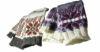 Aurora fingerless mitts is knitted in the round with two solid colors and one multicolor. There are used three colors in the model, but you're knitting with only two at a time. Aurora can also be knit with two colors.