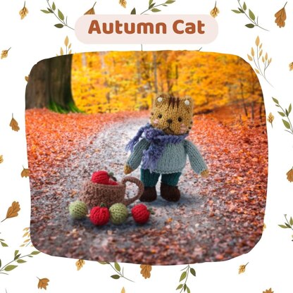 Finished size: Cat 12.5cm tall, Basket 5cm diameter x 2cm tall, apples, 1.5cm