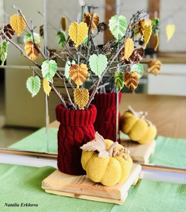 Do you want to have your own leaf fall? Small, colorful leaves are indispensable for creating a cozy atmosphere during the autumn season. Using these, you can create beautiful compositions, decorate small objects (clocks, vases, candles, lamps, etc.), make a garland or wreath. And if you crochet your leaves from green yarn, you get a spring or summer decor. When using the recommended materials, the length of one leaf is 5 cm.
