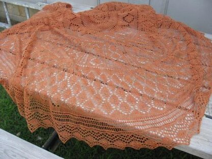 Who can resist a Pi shawl? This is my version for autumn. I am a big fan of the autumn season. I have every shape of shawl in my autumn collection. I have a rectangular shawl ”Simply Leaves”. It is made in Jojoland sock weight (a wonderful yarn). I have a half hex shawl ”Autumn’s Glory”. It is made in Trenna (only available through Little Knits, a luxurious yarn). This same pattern can be made in a triangular version. I made mine in Malabrigo lace weight. Check out my "Arkansas Diamonds Shawl". Keep checking for new patterns.