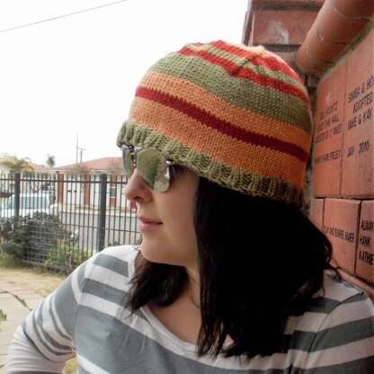Skills needed for working the hat are working in the round, knit, purl, k/fb, k2tog, and adding a new color. The Autumn Striped Hat worked using Berroco/Touché; 50% Cotton/50% Rayon. However, any worsted weight yarn will do. Berroco Vintage has lots of fantastic colors for you.
