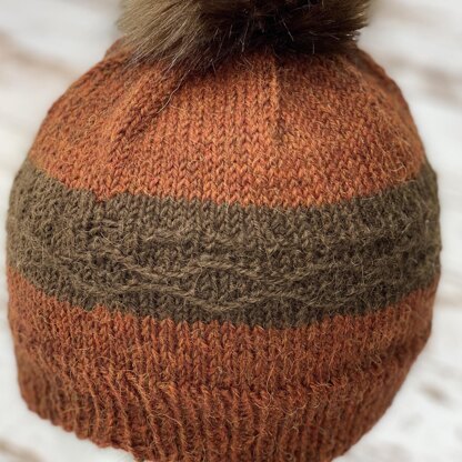 This is a fun twist on a standard stockinette beanie. The accent pattern is a slipped stitch sequence to add interest with a classic style.