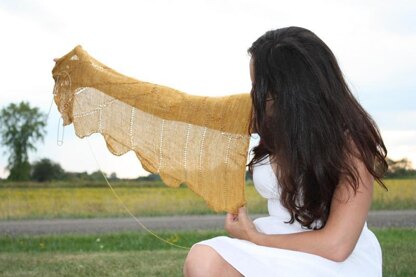 Autumnal Flight is a light, airy and unique beaded shawl. With eyelets arranged to create the illusion of feathers, this lacy wing is a beautiful addition to your shawl collection!