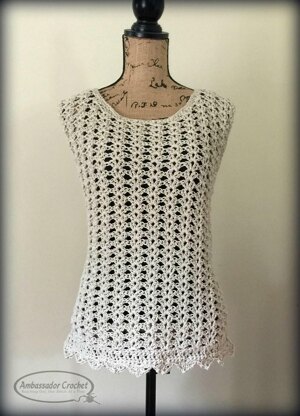 The Ava Shell is made for the advanced beginner who would like to try a garment, or anyone looking for a great summer tank top shell to wear over a tank, etc.
