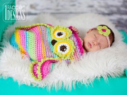 FORMAT: PDF, 10 pages, 2.8 MB (mobile devices friendly). Language - English. The pattern is written row-by-row using US crochet terms, diagrams, and step-by-step photos (easy to follow). Instructions for all 3 items are included in this pattern: Owl Cocoon, Earflap Hat with Pom-Poms, and Flower Headband.
