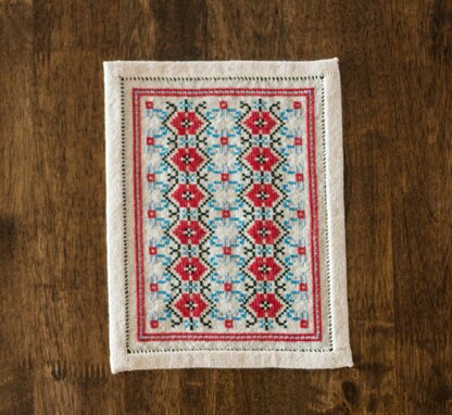 A vibrant all-over design worked in reds and blues with black for emphasis, this design can also be worked to any size you choose by simply using a larger piece of fabric and working additional repeats.