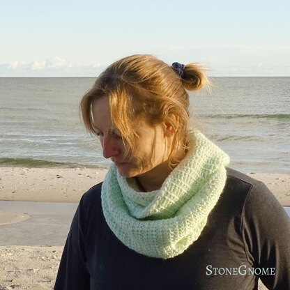 The scarf and cowl are worked bottom-up (no seam/sewing) and are reversible.