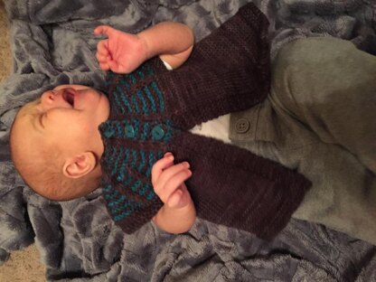 Azanti is a top down cardigan, and made to be worn loose and grow with your baby.