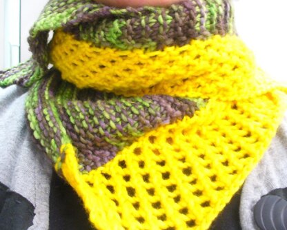 This neckwarmer/shawl is designed to be a stash buster. more details here.