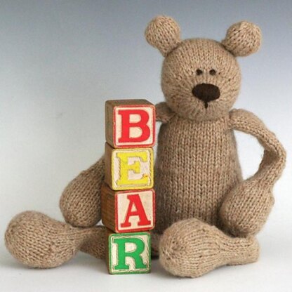 When knit to gauge, Bears will measure about 16.5" from head to toe (ears not included). I worked the example bear in hand spun worsted (alpaca/wool blend) from Shady Side Farm Studio held double. Shady Side Farm is one of my favorite shops, a variety of blends and dyes are hand spun by the farmer! You'll need about 340 yards of worsted for doubling or 170 yards of a plain old bulky yarn to make this guy.