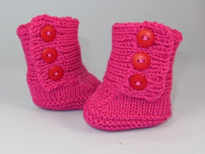 This is my Baby 3 Button Booties knitting pattern. The knitting pattern provides full instructions for 4 sizes, XS (preemie and tiny baby), S (newborn-3 months), M (3-6 months) and L (6-9 months) with lots of step by step photos to help you with the makeup.