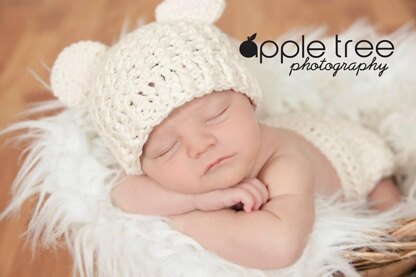 This is a PDF file for a crochet pattern to complete an adorable bear hat. This makes a great hat for a photo shoot or a photographer who needs photo props!