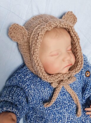 This cute baby bear bonnet is a beginner-friendly project, with simple construction, worked flat and then seamed, making it easy to follow for those new to knitting. The hat is designed to be made with just one 50g ball of chunky/bulky yarn, it's a quick and satisfying knit. The bonnet has two ears which are added once the bonnet is complete, these are optional. The bonnet is fastened with ties which are worked as part of the opening to secure it gently under the chin.