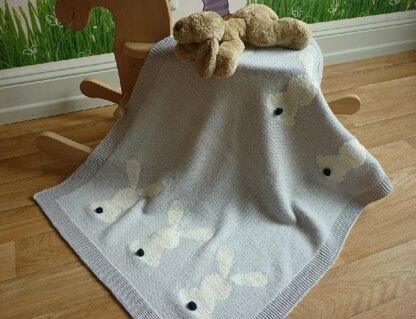 The blanket is decorated with six rabbits which are worked in duplicate stitch (but you can knit them using the intarsia method if you like). There are charts showing the rabbit design and how to place them on the blanket.