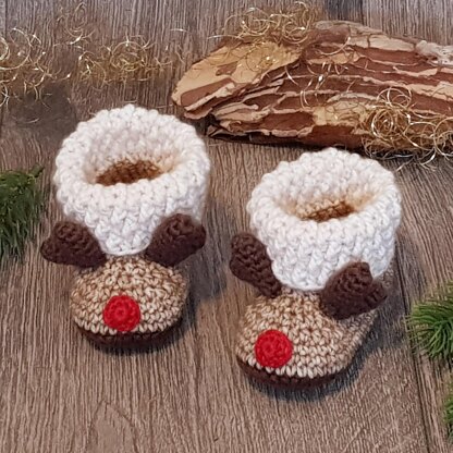 These adorable little reindeer booties with antlers and the red nose are a beautiful loving gift for expecting or new parents, especially in the cold season, as well as cute accessory for Christmas-themed baby photos.