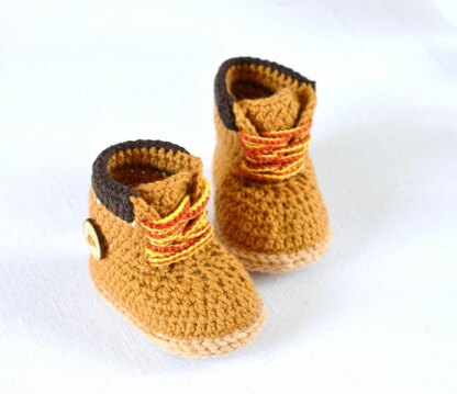 CROCHET PATTERN for super-cute Baby Booties in the Timberland Style - I wanted these to look as close as possible to the original Timberland Boots - Just Like mummy and daddy's, only tiny! Who could resist these winter or summer! These crochet booties have been a HUGE hit here in London for the past couple of years so now I'm bringing the pattern to Ravelry - I hope you enjoy it!