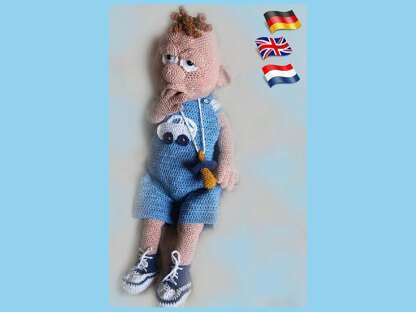ENGLISH * Simple pattern if you know how to crochet Magic Ring, chain , slip stitch, single crochet, half double crochet and double crochet. * This manual is available in English, Dutch and German. * The Doll is 50 cm (hook size 3). * The manual is very detailed and contains many photos. * If you have any problems and / or questions about my instructions please contact me by email. Attention! This is a crochet pattern, not a finished product.