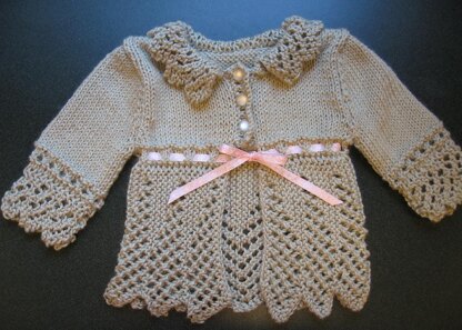 It has been a while since I designed a baby sweater. I wondered if I was ever going to have another idea for a baby sweater. Then, I fell in love with the lace edging called “Grandma’s Edging,” (of course, found in my favorite book, Barbara Walker's, "A Second Treasury of Knitting Patterns") and then, a local yarn store, got in the Baby Bunny yarn, that is so soft, and it all came together.