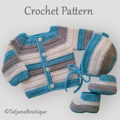 ♥ Crochet Pattern Baby Cardigan, Bonnet and Booties ♥ Size in this pattern 0 - 3 MONTHS.