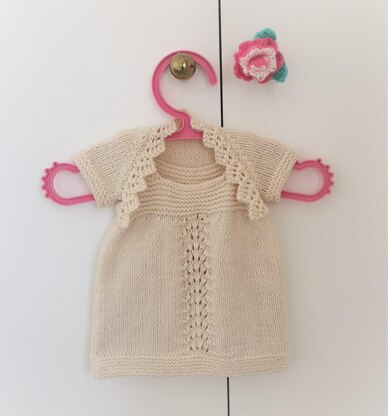 Knitting pattern for a very pretty lacy dress and shrug for babies and toddlers aged newborn to 24 months and is perfect for those special occasions.