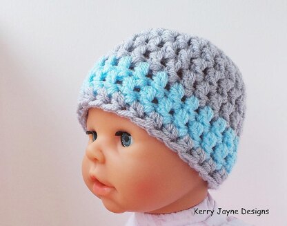 A truly modern baby hat with a simple chunky Double crochet stitch, great for everyday wear and great as a photo prop!