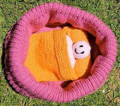 A reworking of an old crochet favourite! This simple to knit lined purse turns into a cradle in seconds just by turning the top of the purse over. The pattern includes instructions for purse, sleeping bag and baby doll knit in worsted weight yarns and contains large photographs of each piece.
