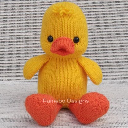 Freely sitting approx. 8” tall, Baby Ducky is worked in worsted wt. (Aran/10-ply) yarn, using approx. 126 total yds. (approx. 90 yds. yellow, approx. 36 yds. orange).