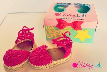 Material: Fuchsia, Cream, Cotton Hemp rope 2 mm hook The finished shoe is long about 10cm, wide 5cm and high 4,5cm Stitches used: • chain (ch) • single crochet (sc) • double crochet (dc) • slip stitch (sl st) • 2dctog = work 2dc together • 3dctog = work 3dc together • cluster = the cluster is a 4dctog worked into the same stitch • Back Loop • 3ch at the beginning of the round equals 1dc
