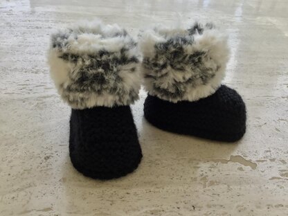 Baby Faux Fur Booties - The Yarns I Have Used Are Stated In The Pattern. This Pattern Is Quick And Easy, It Makes Three Sizes 0 to 3, 3 to 6 and 6 to 12 Months. Made In One Piece On Two Needles Working From The Sole Of The Booties Upwards.
