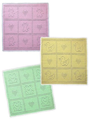 These darling snuggly soft blankets are crocheted with filet motifs perfect for Baby!