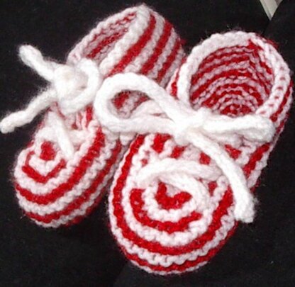 These baby lace up shoes in AFL colours are knitted in easy garter stitch with i–cord laces.
